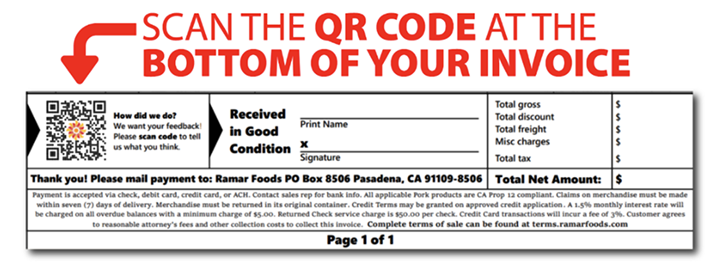 Take 30 seconds to scan the QR code below—or your next Ramar Foods invoice—and help us bring you the products and service you want most.